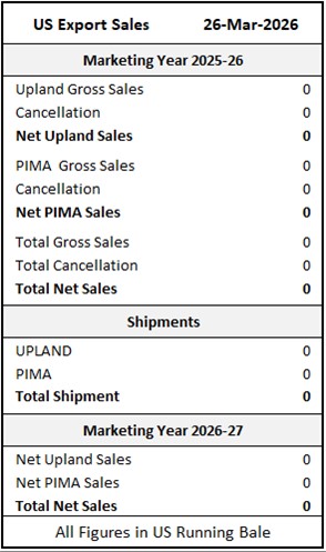 Net sales of Pima totaling 15,500 RB for 2025/2026 were down 50 percent from the previous week, but up 16 percent from the prior 4-week average.